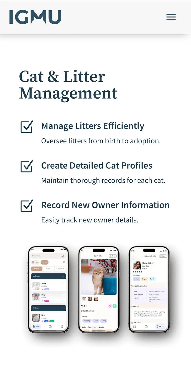 Igmu er en app for katteelskere, hvor man både kan købe og avle katte. Igmu ønskede at skabe et varmt og legende katteunivers med en ny visuel identitet og hjemmeside, der tydeligt formidler appens univers og formål. Kærligheden til katte har været det bærende element gennem hele processen.